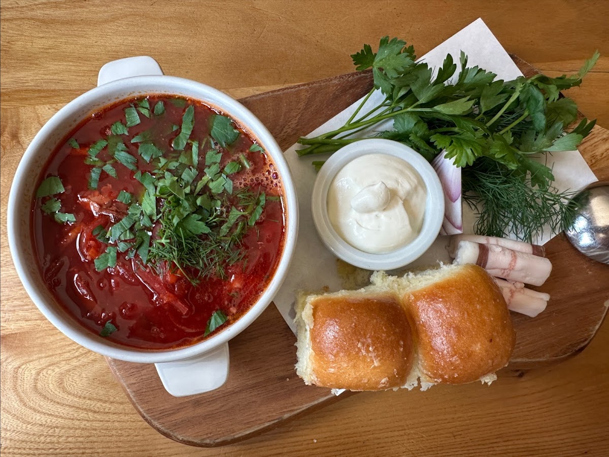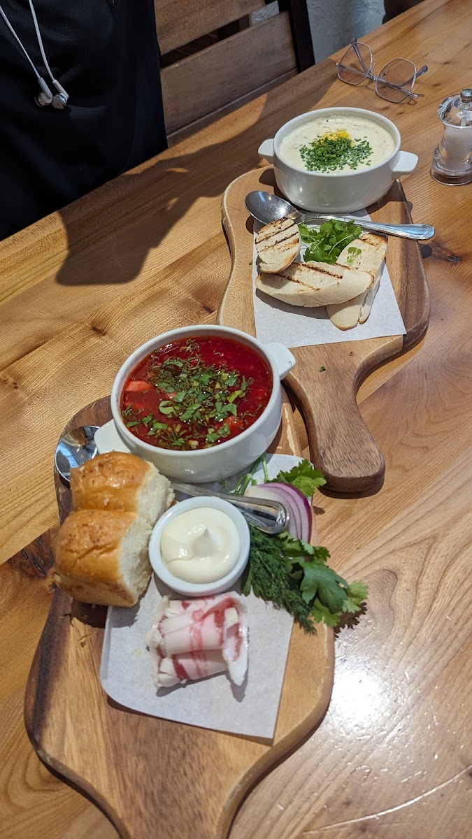 Everything was tasty and beautifully presented. The salo was delicious, the potato dumplings were perfect, and the khachapuri was absolutely amazing. The borscht was a bit surprising — it felt like there was some extra seasoning that didn’t quite fit. The prices are reasonable, and the staff is very friendly. Overall, a great experience Also, the ‘Napoleon’ cake didn’t really taste like a true Napoleon — more like a nice cake, but not the classic version. The only small thing that felt odd was the bare table — it would be nicer with a tablecloth or at least a placemat