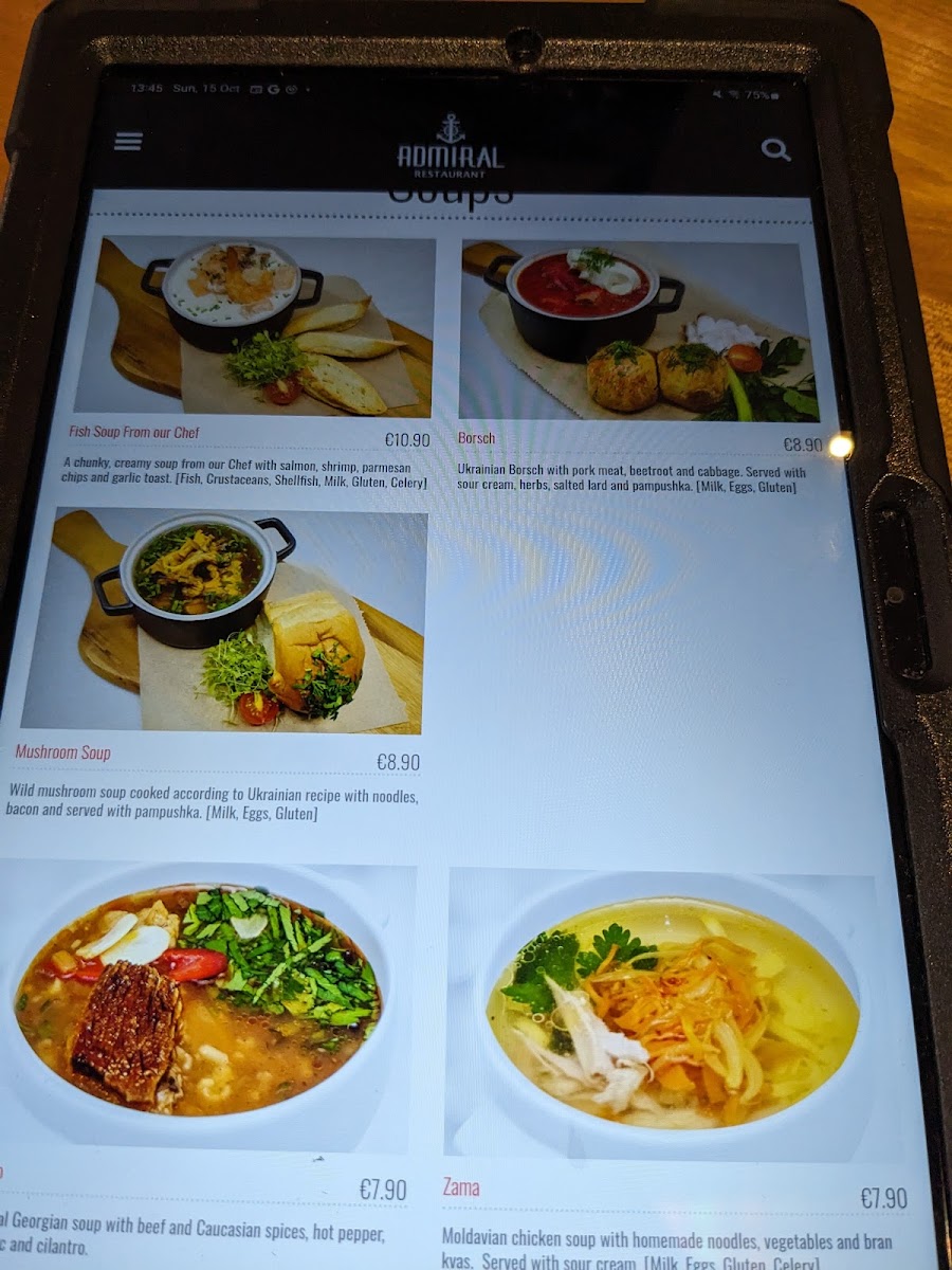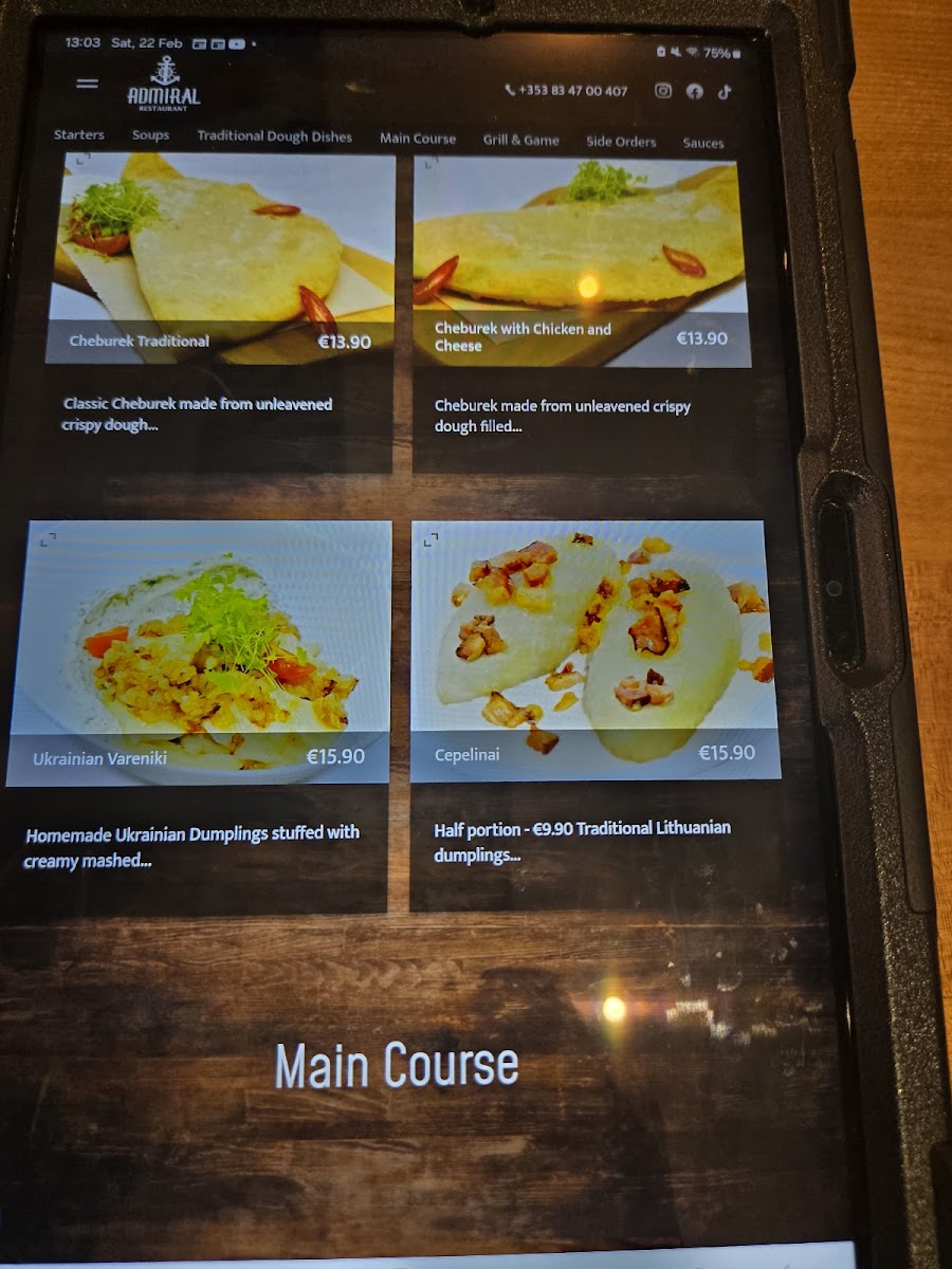 Restaurant Admiral Menu